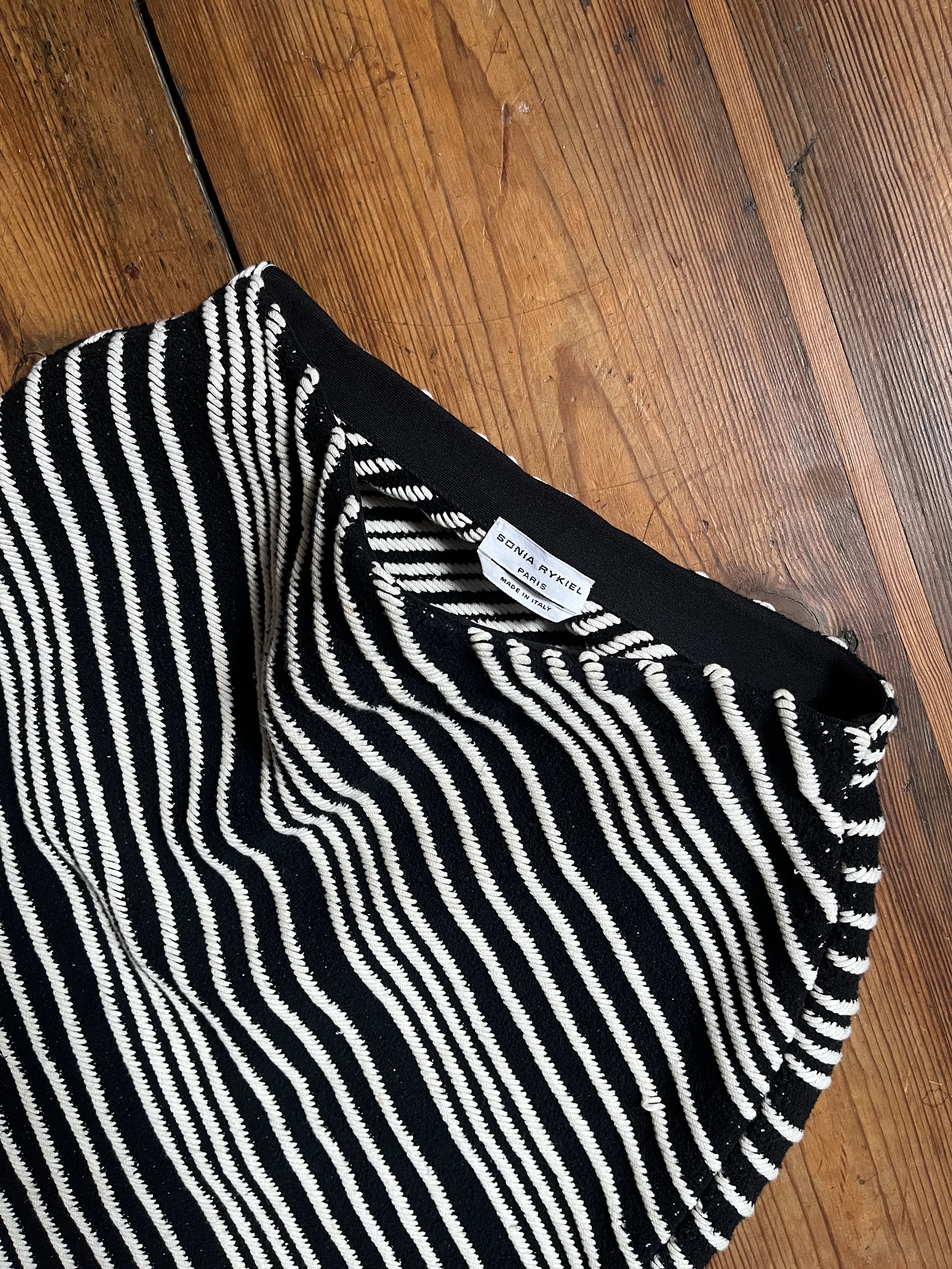 These vintage trousers from Kenzo Paris are made from a gorgeous jacquard fabric, with a zip and button closure in the side and a slight barrel-leg fit.